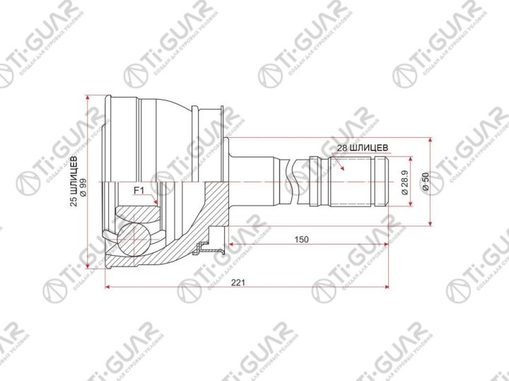 ШРУС наружный /передний левый /правый /TI-GUAR для Nissan Datsun Frontier FMD22 1997- NP300 D22SS YD25 4WD; 25*50*28; TG-7471; (NI-071 0210-071) NI071 NI71 0210071