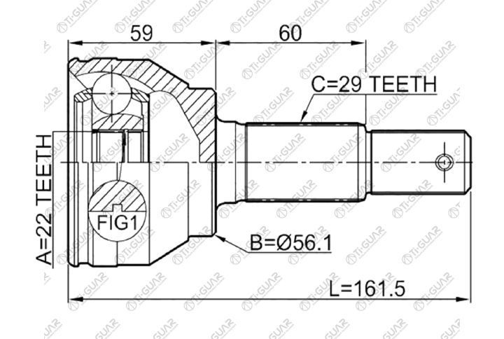 ШРУС наружный /TI-GUAR для NISSAN JUKE F15 HR15DE 2010- /22*56.3*29; TG-7494; 0210F15 391001KA5B 391011KA0B NI094
