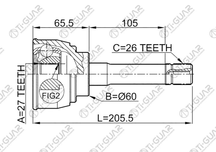 ШРУС наружный /TI-GUAR для Toyota TownAce 1985- 2C 3C 4WD /27*60*26; TG-9559; (43430-28011 TY-59 TO059) 4346029055 4343028010